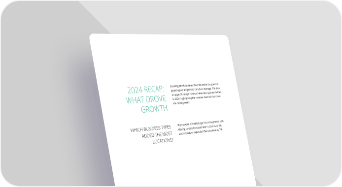 Knowing which revenue channels drove the greatest growth gives insight into trends to leverage. The data on page 06 recaps how each business type performed in 2024, highlighting the revenue channel that drove the most growth. WHICH BUSINESS TYPES ADDED THE MOST LOCATIONS? The number of medical spa locations grew by 15%. Waxing centers increased their locations by 8%, and nail salons expanded their presence by 7%. 2024 RECAP: WHAT DROVE GROWTH 05
